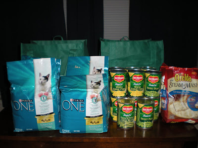A quick trip to Target tonight to get some needed cat food and use the coupons I had before they expired tomorrow. While I was there I picked up some more Del Monte vegetables that are on sale this week, some of which will be sent with M to school tomorrow for the canned food drive.